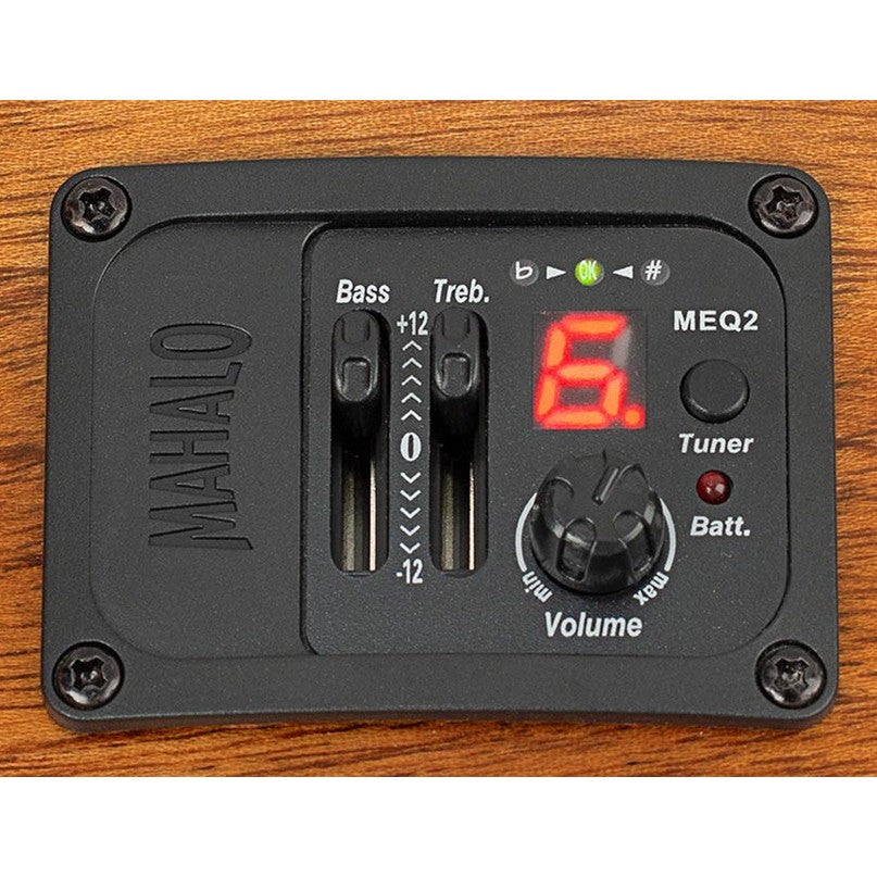 Der Mahagonihals und das Griffbrett aus Amara-Ebenholz sorgen für ein komfortables und geschmeidiges Spielgefühl. In Kombination mit dem Graph Tech NuBone XB-Sattel und den Aquila Super Nylgut-Saiten wird optimale Resonanz und Klarheit gewährleistet. Der Mahalo MEQ2-Vorverstärker mit 2-Band-EQ und integriertem Stimmgerät macht diese Ukulele bestens für den verstärkten Einsatz bei Auftritten oder Aufnahmen gerüstet. Eine robuste Tragetasche mit Schultergurt ist im Lieferumfang enthalten.
