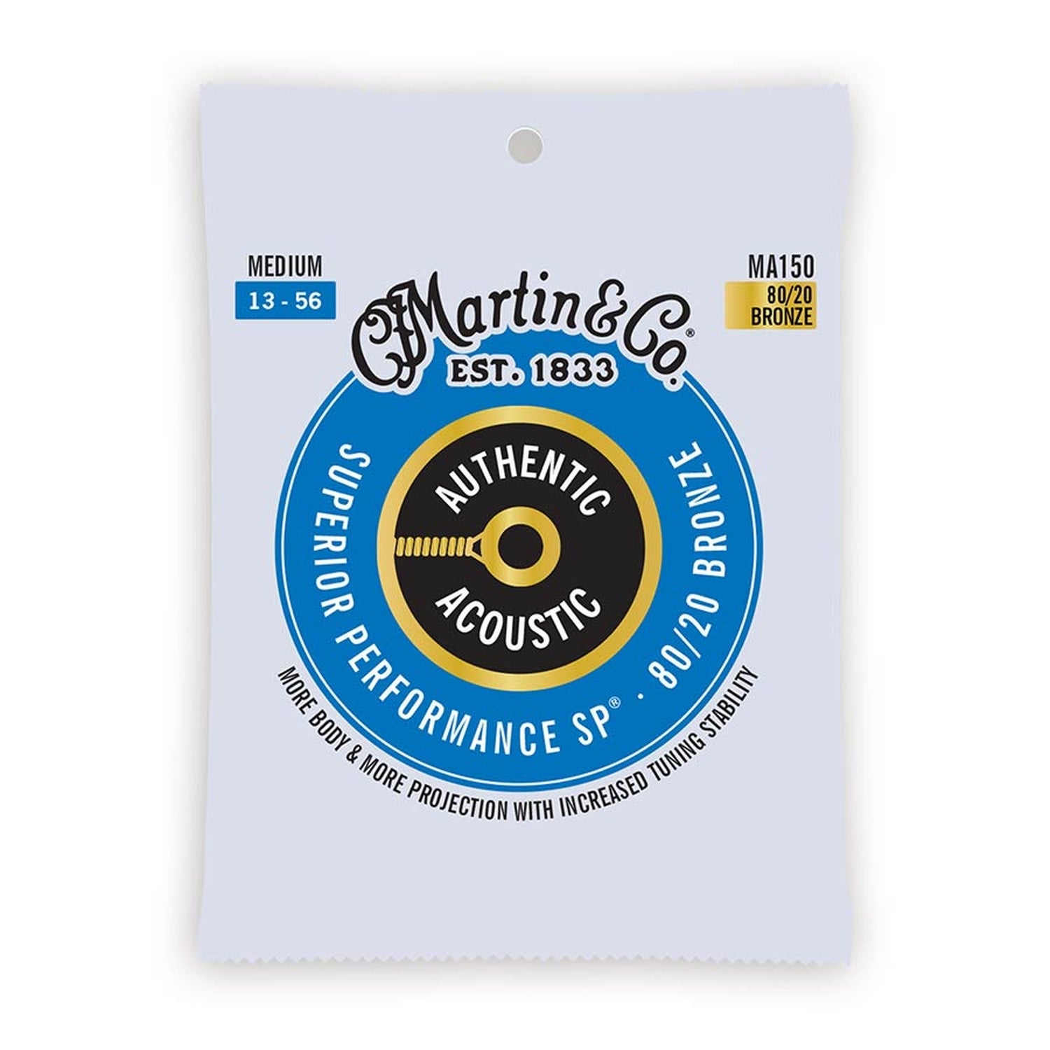 Martin Authentic Acoustic SP®-Saiten bieten hervorragende Stimmstabilität, Korrosionsbeständigkeit und hervorragende Spielbarkeit.
