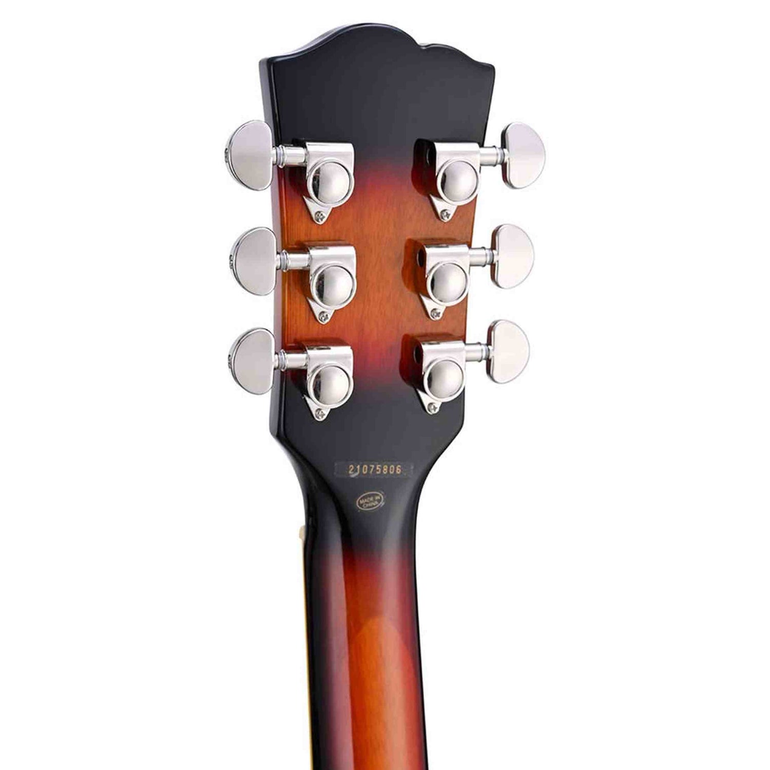 Die SX SEL6/VS ist eine traditionelle Archtop-Gitarre mit warmem Look und vielseitigem Klang. Der Ahornkorpus mit F-Löchern verleiht ihr einen hellen, akustischen Charakter, während der eingeleimte Okoumé-Hals und die beiden Alnico-5-Humbucker für einen vollen, runden Ton sorgen. Perfekt für Jazz, Blues und sanften Rock. Das klassische Vintage-Sunburst-Finish und die cremefarbenen Bindings verleihen der SEL6 einen zeitlosen Look.